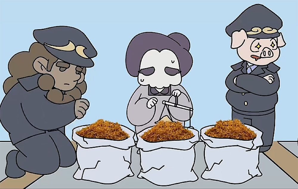 白骨精穿越到現(xiàn)代后,企圖通過非法銷售煙草制品快速致富,先后嘗試直播售煙、開小店售賣特制香煙及非法銷售煙絲,均因違法經(jīng)營被查處。該故事警示人們,違法經(jīng)營不可取,終將受到法律制裁。